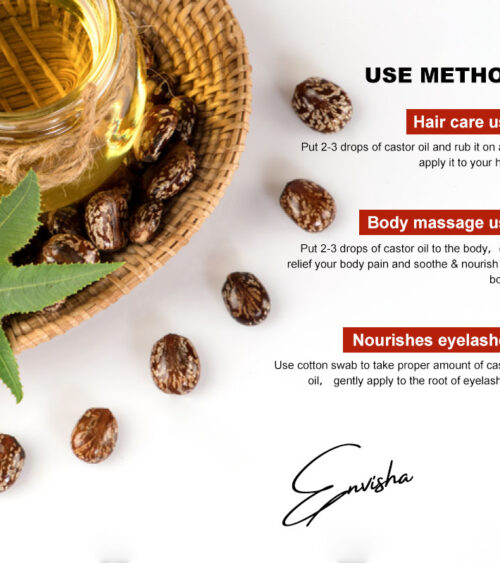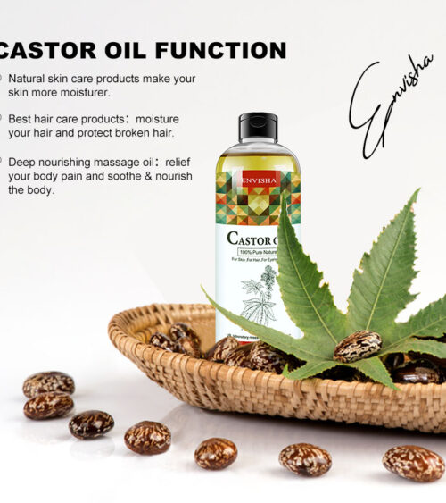 100% Organic Castor Oil er en amerikansk koldpresset økologisk olie. Denne olie er god som massageolie, og fungerer godt sammen med en detox-kur. Den blødgør og nærer huden, og har man områder med urenheder på kroppen, kan man med fordel bruge olien der. Må ikke bruges af gravide.