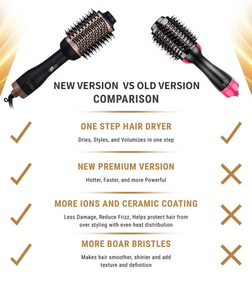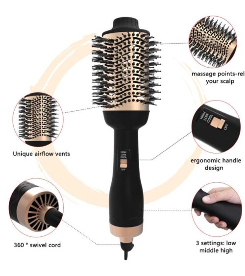 - Du kan bruge professionel varmluftskam som hårtørrer eller styler for at gøre dit hår bølget eller lige.