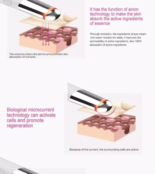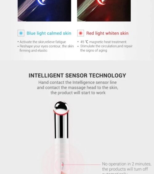 – Varm & vibrerende tilstand, Skånsom pleje, Blå og rød lys med vibration : Blåt lys vibrerer, beroliger huden, kæmper mod mørke cirkler og lindrer øjet, rødt lys vibrerer, 45 ℃ ± 5 ℃ konstant temperatur, blid kærtegn, reducer fine linjer, opstrammende hud, farve undvigelse og falme arret, kan gøre reparation af aldringstegn.