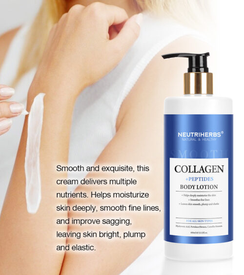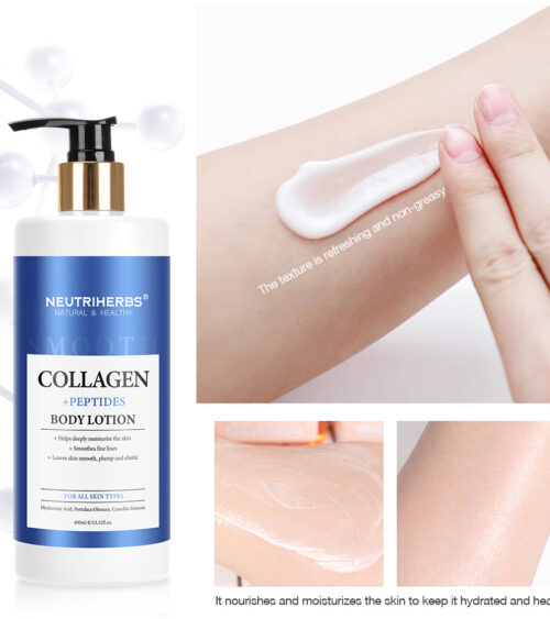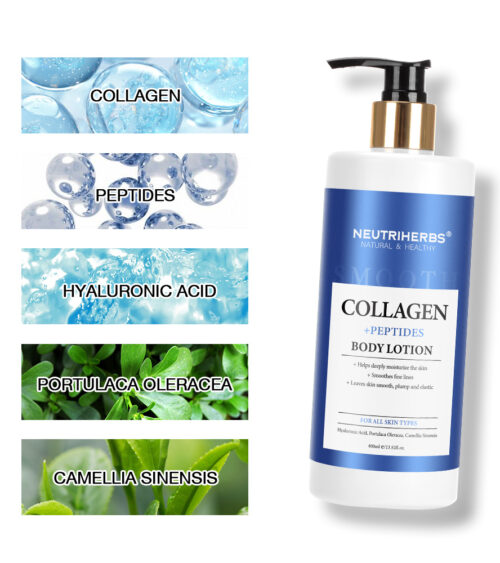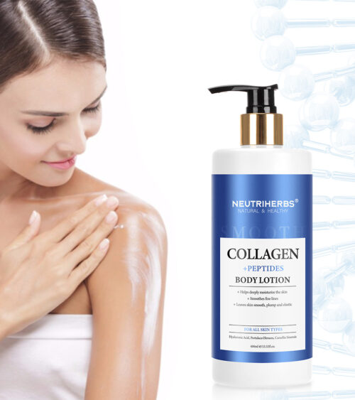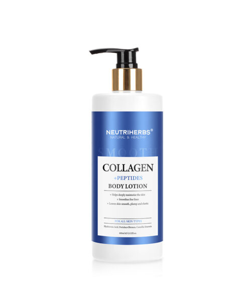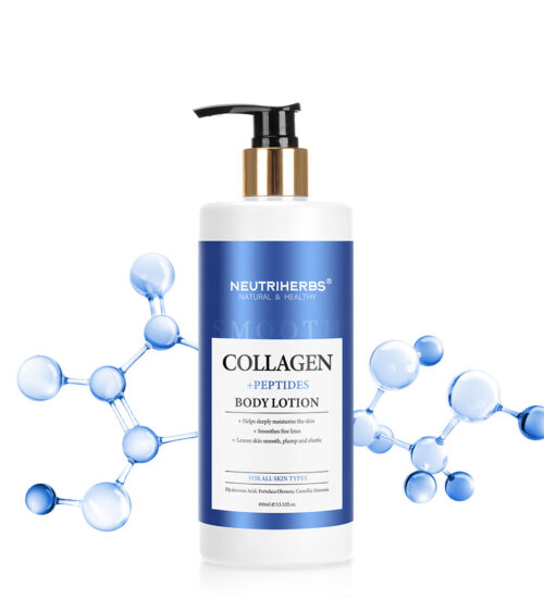 Neutriherbs Collagen bodylotion med kollagen, peptider og hyaluronsyre. Kollagen er naturligt rig på aminosyrer og peptider og giver næringsstoffer til huden for et optimalt sundt udseende, hydreret look. Forstærket med peptider og hyaluronsyre indeholder disse gavnlige ingredienser genoprettende egenskaber og øger vandretentionen i din hud for at reducere forekomsten af rynker og fine linjer for en fejlfri teint. Denne lotion efterlader din hud blød, glat og naturligt sundt udseende og er skånsom nok til daglig brug. Det kan let absorberes uden en fedtet rest. Udviklet til alle hudtyper.